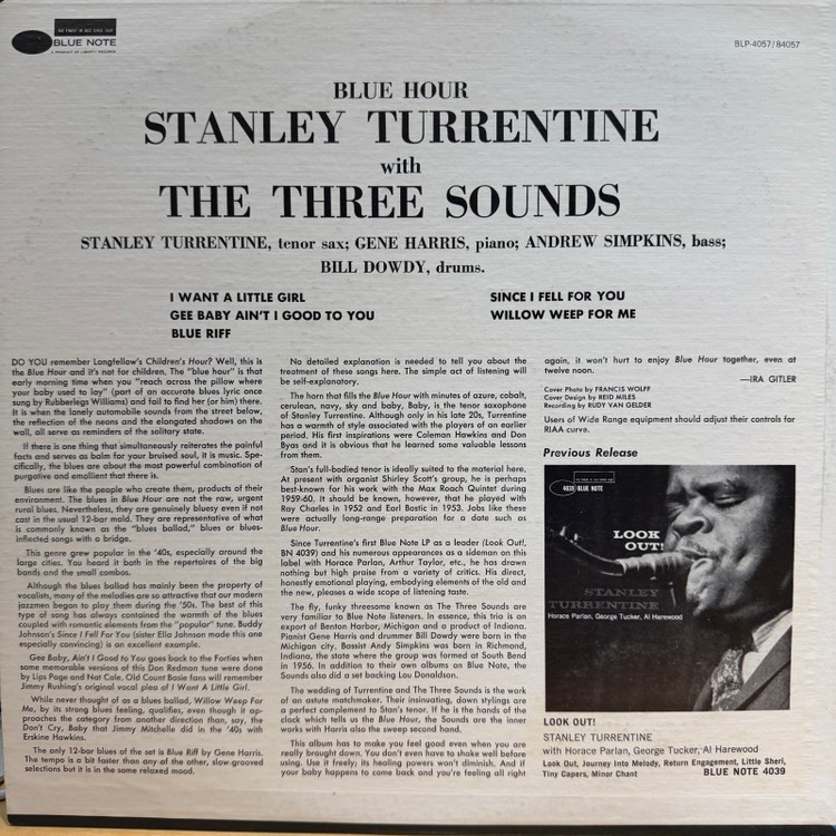 Stanley Turrentine With The Three Sounds – Blue Hour (1975 / US Reissue / RVG, Inner Sleeve, White Big B Label, JKT Corner Cut)