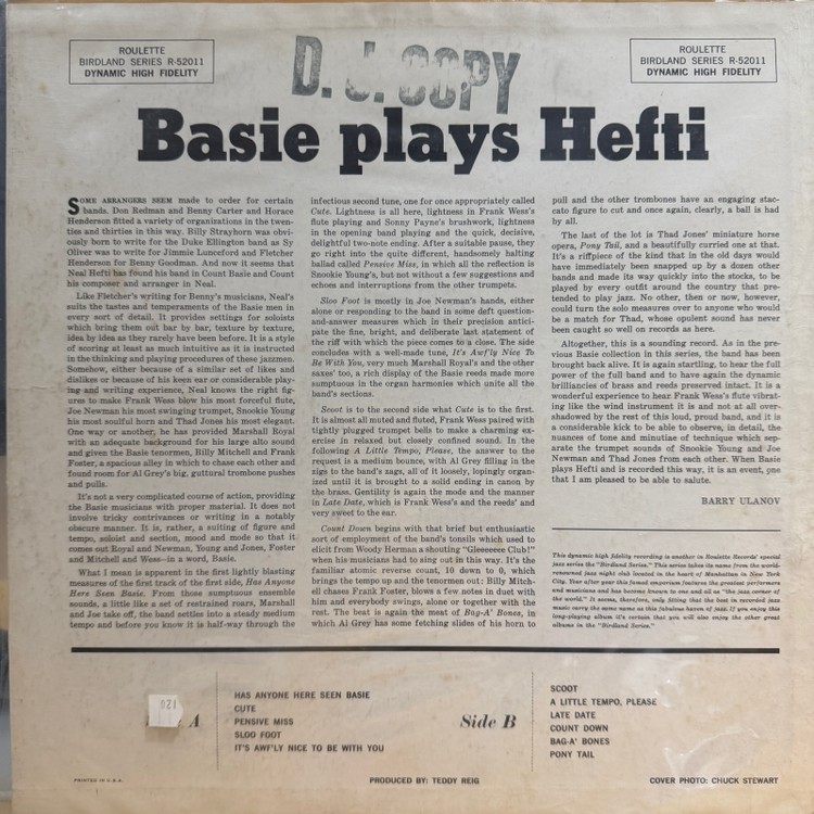 Count Basie & His Orchestra – Basie Plays Hefti (1958 / US 1st / Mono, Promo)