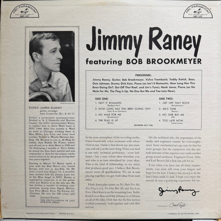 Jimmy Raney Featuring Bob Brookmeyer – Jimmy Raney Featuring Bob Brookmeyer (1956 / US Original / Mono)